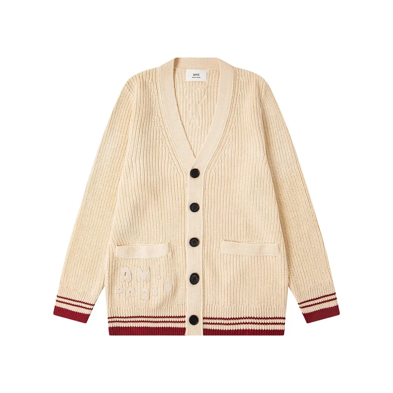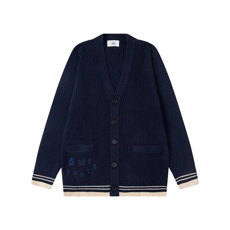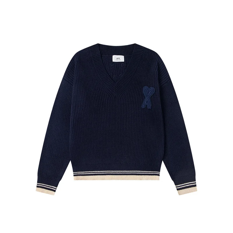 Home > AMIPARIS Knitted Striped V-Neck Drop-Shoulder Wool Sweater-5156