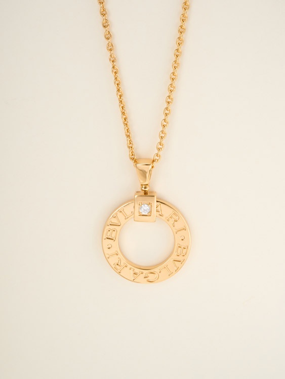 Bulgari logo engraved necklace logo letters on round pendant-3585