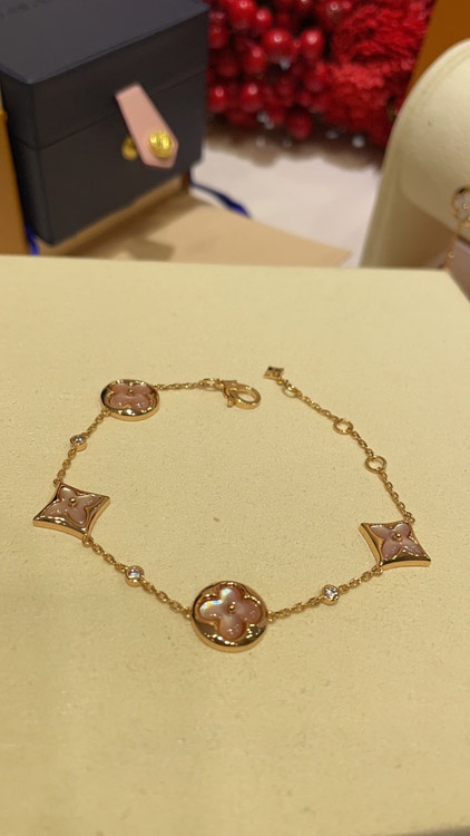 Louis Vuitton LV Pink Mother-of-Pearl Floral Four-Leaf Clover Rose Gold Bracelet-3728