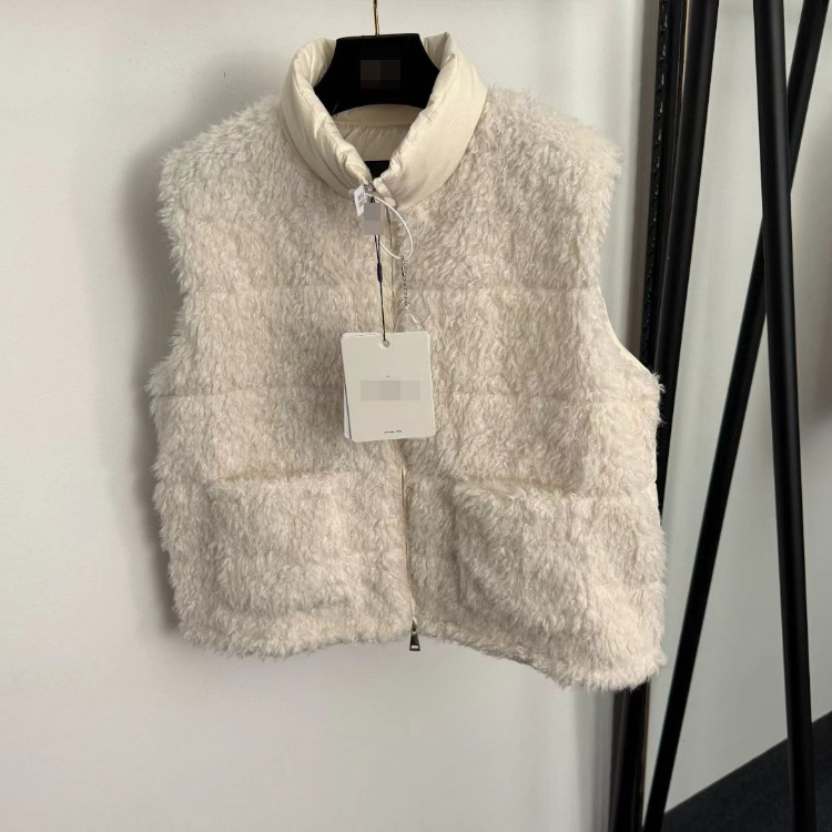 Moncler new down vest with stand-up collar and contrasting lambskin trim-5405