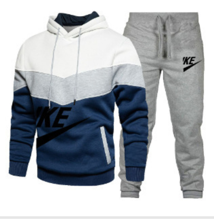 New multi-colored patchwork hooded sweatshirt set-5221