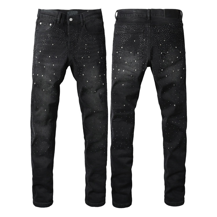Purple Brand washed, ripped, distressed, rhinestone-embellished, stretch-effect slim-fit jeans-4248