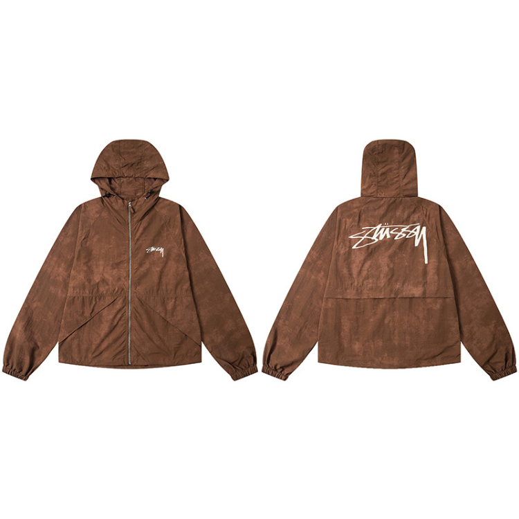 Stussy new casual loose-fitting letter print windbreaker hooded jacket-5274