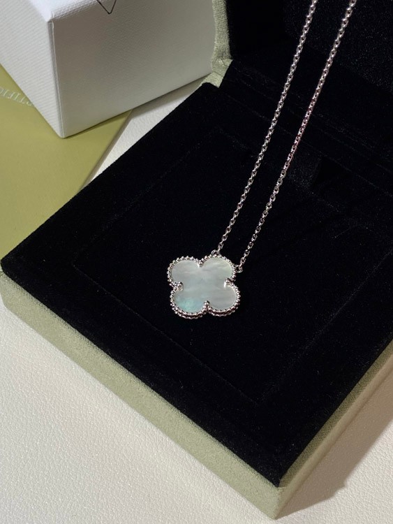 Van Cleef & Arpels four-leaf clover white wide necklace-3788