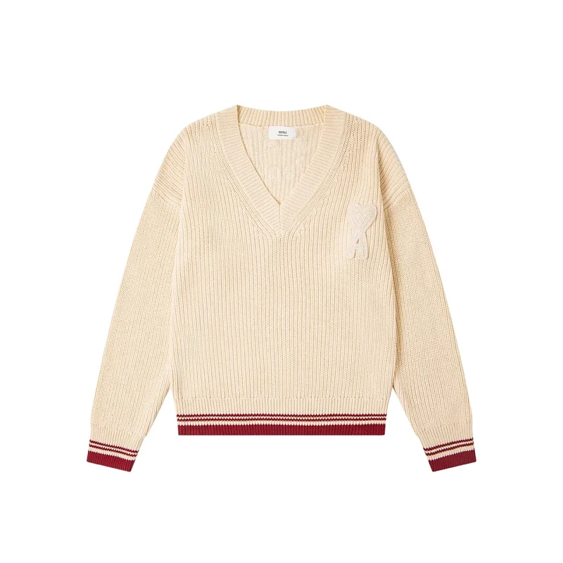 Home > AMIPARIS Knitted Striped V-Neck Drop-Shoulder Wool Sweater-5156