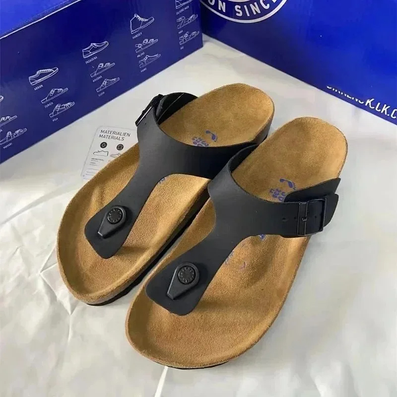 BIRKENSTOCK Lazy men's and women's double buckle flat slippers genuine leather cork footbed comfortable outdoor sandals-2342