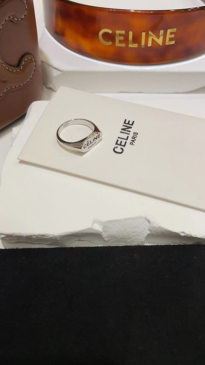 Celine black letter print silver ring-3737