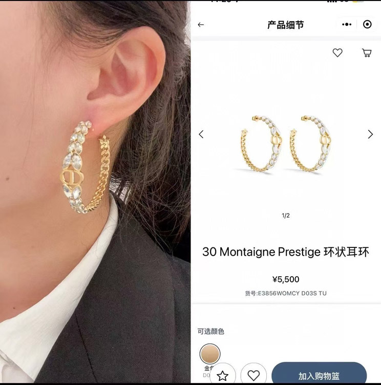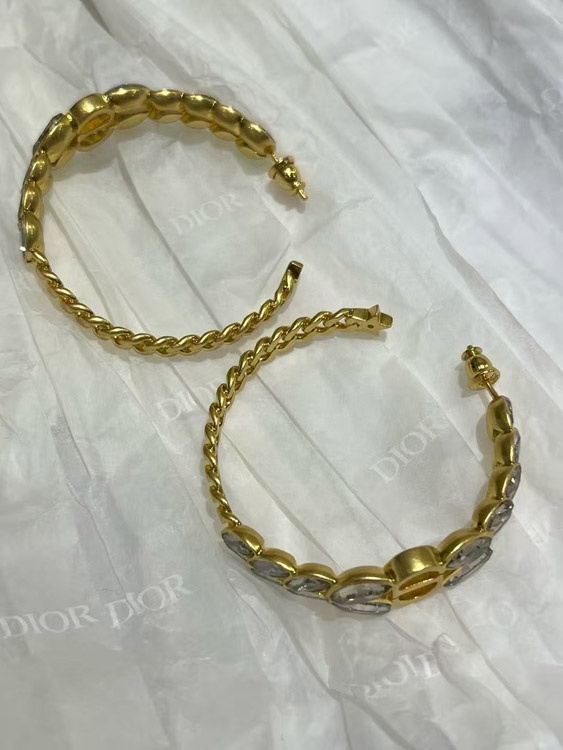 Dior Gold Horse Eye Crystal Wheat Ear Chain Hoop Earrings-3703
