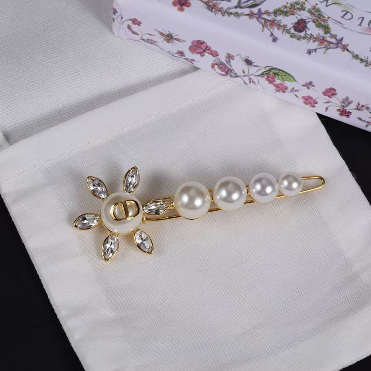 Dior Sunflower Pearl Rhinestone Hairpin Clip-3890
