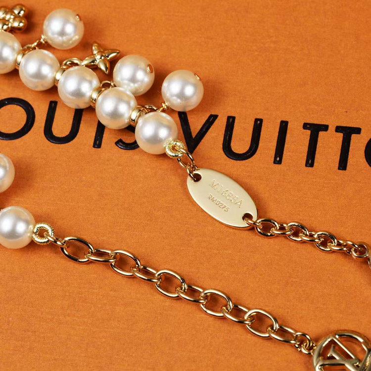 Home > Louis Vuitton LV gold metal fine chain pearl letter flower pendant bracelet-3655
