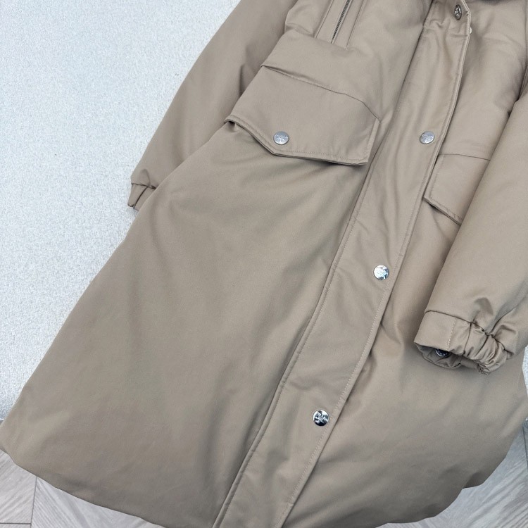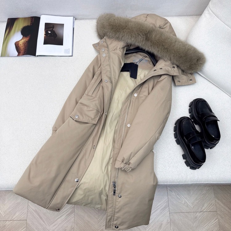 Prada thick down coat with large fox fur collar and fitted waist-5352