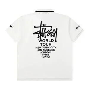 Stussy Black 8 embroidered short-sleeved polo shirt loose casual short-sleeved T-shirt-2817