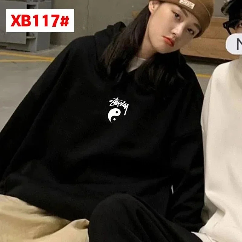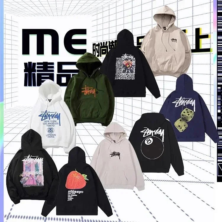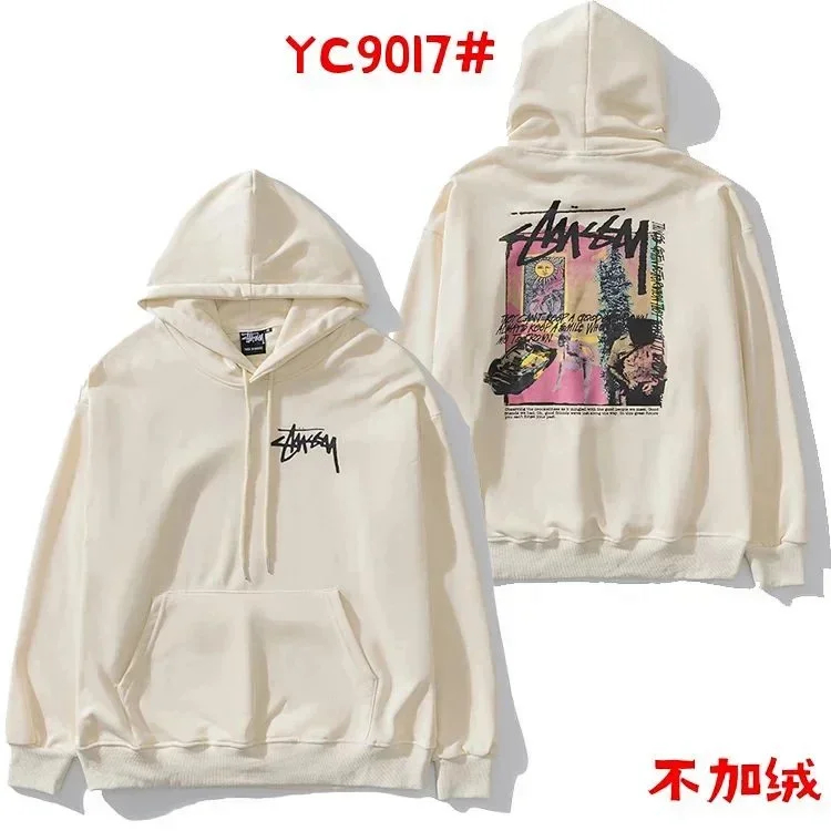Stussy street personality fashion loose sweater hoodie plus velvet jacket sweater-2450